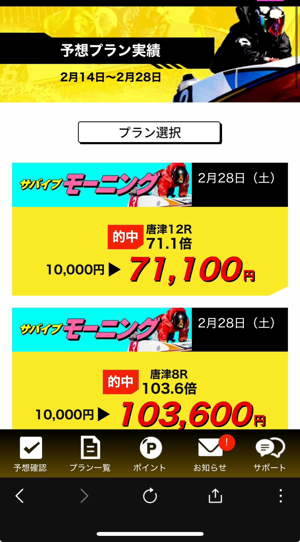 プランは、3〜4日先まで購入でき、完売が多いですが、売れてるように見せかけ、空売りで的中捏造なのではと思ってしまいます。